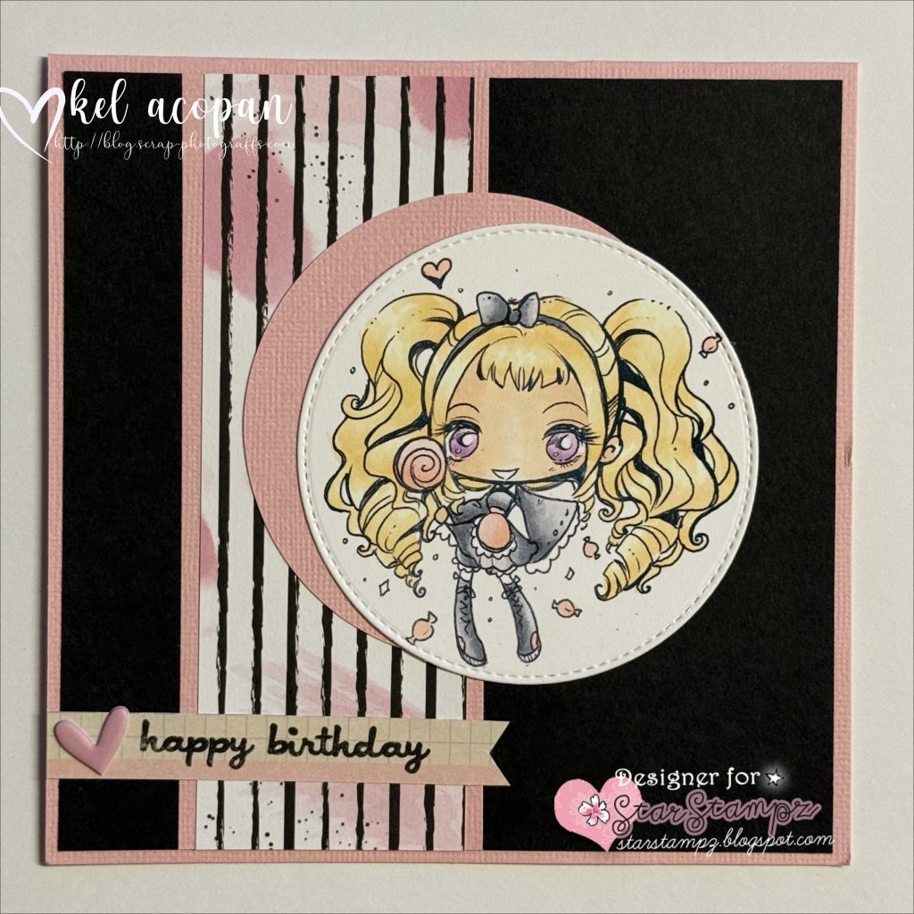 It’s time for a new monthly challenge over at Star Stampz! The challenge is always Anything Goes but the DT is always given a theme to create with and this month it’s For a Girl. I’m using the amazing digi Candy Girl from the Star Stampz Etsy Store!