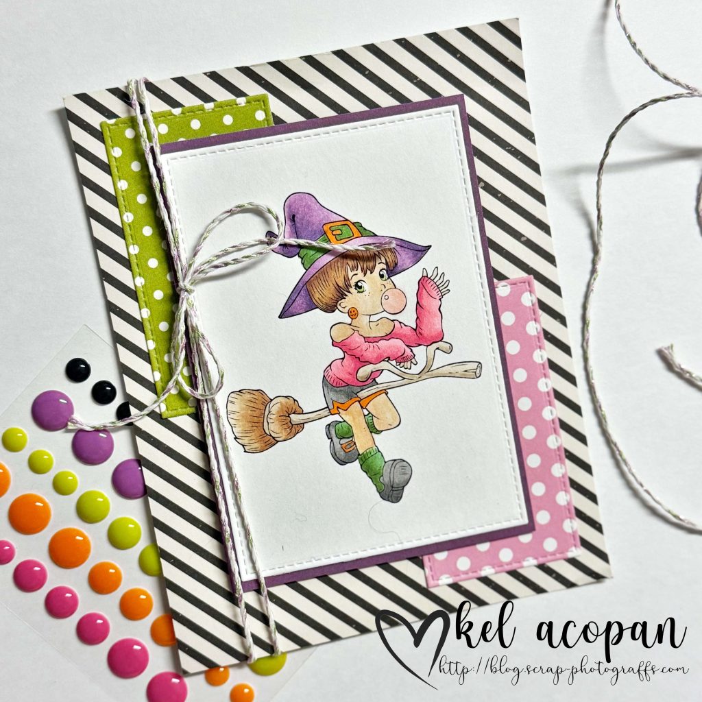 This week I’m using the amazing digi Cool Little Witch from The Paper Shelter Store. I tried to stay away from the typical orange and black combo as much as possible!